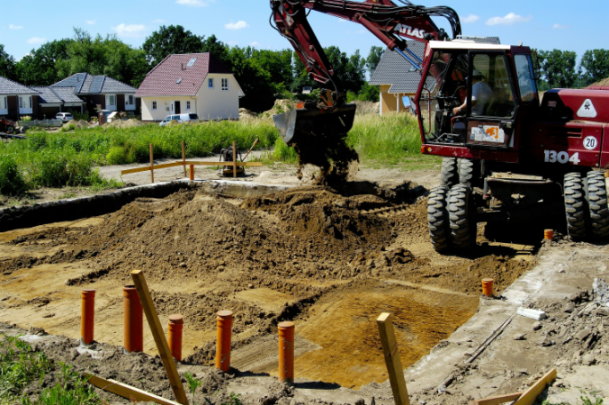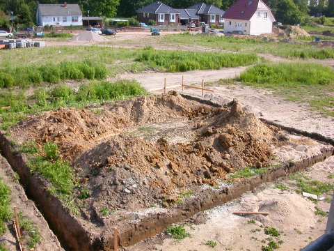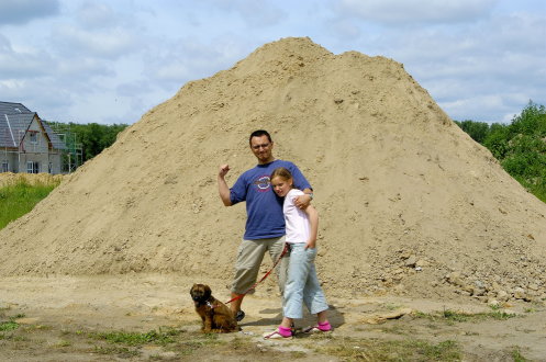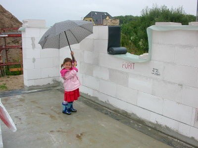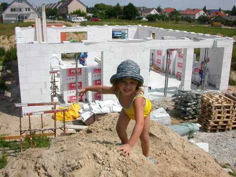 Mittwoch, 16.06.2005 - Streifenfundamente gegossen und als stabil von Neele getestet ! Montag , 20.06.2006 - Baugrube ausgehoben - und gleich wieder gefüllt mit Schotter und Sand - Mount-Gräßle entsteht