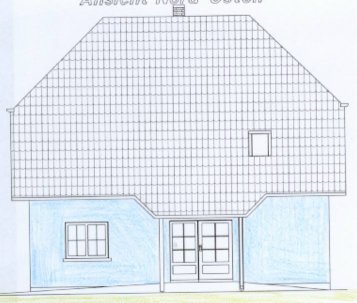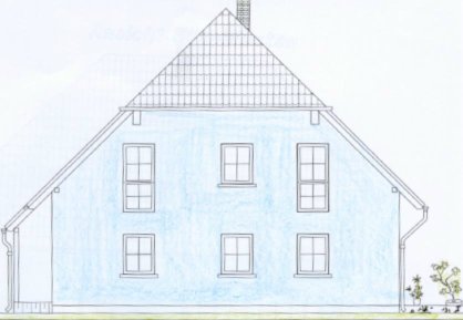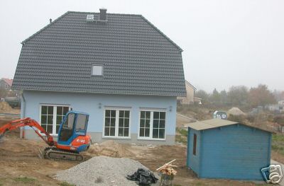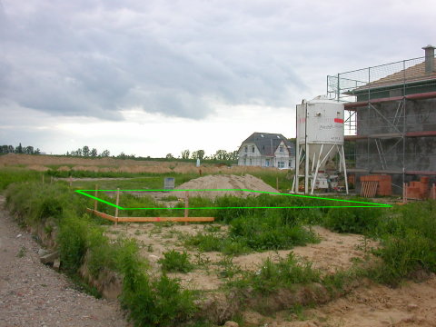 Am 15. Januar 2005 haben wir feierlich unser Grundstück in Besitz genommen, eine von Maike und Wiebke gestaltete Flagge gesetzt und mit Champagner angestossen - ein schöneres Geburtstagsgeschenk habe ich selten bekommen !!! und so soll es mal werden - Bauantrag dazu eingereicht am 14.02.2005 ....