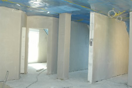 Im Laufe der nächsten zwei Monate kamen dann Estrich und die Elektrik, Böden wurden gelegt und die bäder wurden eingebaut, so dass wir dann auch in den letzten Novembertagen tapeziert und gestrichen haben bis nachts um 23 h !