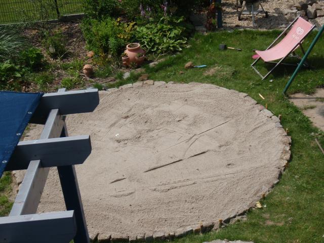 26. Juni 2009 - mit jeder Baumassnahme wurde der Sandkasten leerer und leerer nun hat er endlich seinen Namen verdient und man kann wieder bauen und Spuren ziehen...