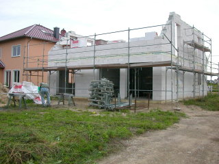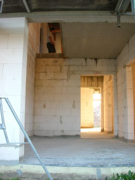 15.09.2005 - erster Aussenputz 20.09.2005 Trockenbauer waren innen, unten kommt Folie auf die Bodenplatte 23.09.2005 nun wird es ernst mit Aussuchen - unsere Traumfliesen Flur haben wir gefunden !