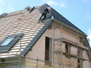 20.08.2005 - Dach ist gedeckt und auch innen sind die Maurer fertig !