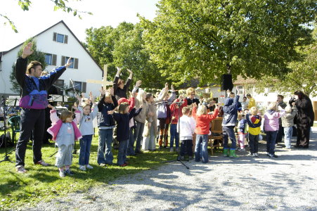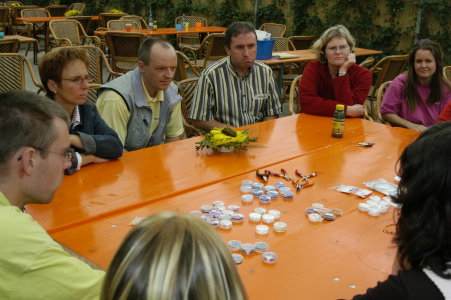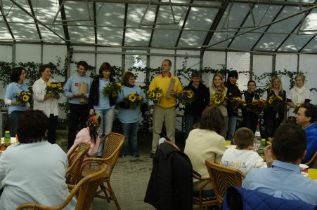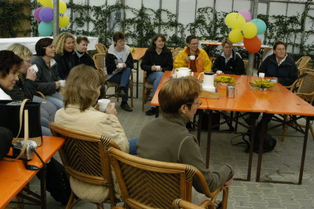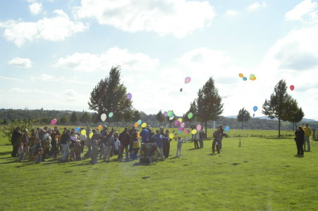 Im September 2005 fand im Sonnenhof Stuttgart das zweite Reittherapiewochenende des Bundesverbandes "das Frühgeborene Kind" statt. 4 traumhaft schöne Tage gingen viel zu schnell vorbei und wir wollen hiermit allen Beteiligten herzlich danken !!! Ich glaube im Namen aller Eltern sprechen zu dürfen, dass es für uns alle unvergessliche Tage waren und dass wir alle hoffen, dass es nochmals die Chance geben wird, an solch einer wunderbaren Veranstaltung teilnehmen zu dürfen ! Alleine schon die Eröffnung war ein riesiges Erlebnis für uns alle. Die Kinderbetreuung steckte voller toller Ideen und T-Shirts zum Bemalen - so wusste jeder wen er vor sich hatte Nicht nur das Reiten, auch der Austausch mit anderen Eltern spielte hierbei eine große Rolle. Gesprächskreise gab es nicht nur für Mütter sondern auch für Väter ! DANK hierfür dem tollen Team ! Faszinierend , wie schnell Eltern und auch Kinder zueinanderfinden ! Bei manchen Zwergen reichte sogar ein Pferd für zwei ! Und für uns natürlich die Hauptsache - Ellert hats gefallen ! Und eines habe ich auch gelernt, auch Männer können Perlenketten basteln ! Und Kinderschminken macht allen Spass ob da wohl auch ein kleiner Teufel drinsteckt ??? Auch der Abschlussgottesdienst war eine tolle Idee Mit den vielen bunten Luftballons steigen auch all unsere Träume in den Himmel und sicher werden wir gemeinsam ganz viele davon erfüllen ! |