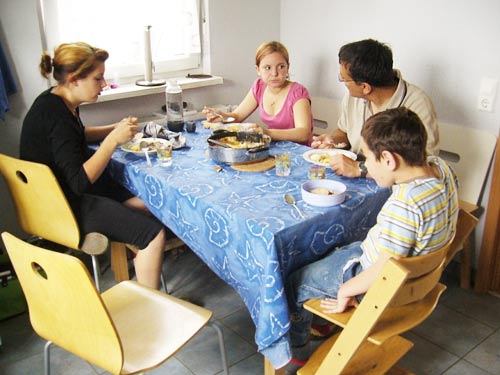 Es begab sich im Mai 2007, dass eine Mutter auszog mit ihrem jüngsten Töchterlein, die Familie zu verlassen und drei Tage die alte Heimat zu besuchen zu Großmutters rundem Geburtstag ..... Auf sich alleine gestellt mit einem fast leeren Kühlschrank, mit vollen Wäschekörben und einem wuscheligen Hund beginnt das Experiment " Überleben ". Während Frau Mama die heimische Sprache in sich aufsaugt und heimatliche Speisen geniesst verhungert die Familie fast am Mittagstisch ! Nein, natürlich ist es so nicht gewesen aber was auch immer der neue Beitrag für Überraschungen mit sich bringt kann hier noch nicht verraten werden - ich weiß es ja selbst nicht, meine Lieben haben beharrlich geschwiegen was so alles passierte während sie mit Papa das Leben ohne mich genossen. Zwei neue Frisuren und ein immer noch leerer Kühlschrank haben mich empfangen, auch manche Wäschekörbe waren eher voller als leerer aber die Gesichter schienen glücklich - also hats an Nichts gefehlt....