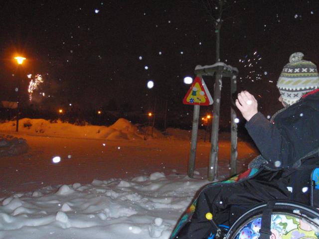 Sylvester versanken wir fast im Schnee und nur warm eingekuschelt im neuen Rolli konnte ich das Feuerwerk bewundern - Ihr glaubt doch nicht dass ich so einen Spaß verschlafe, oder ?