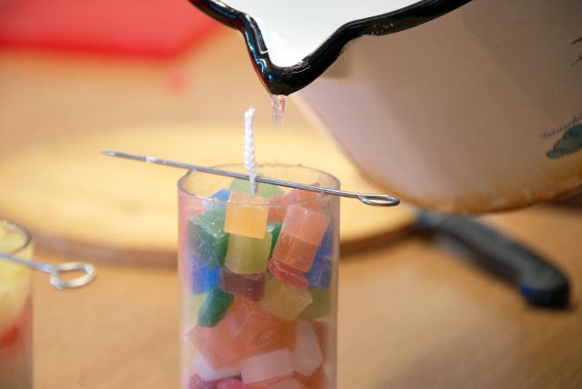 Neele macht Kerzen für die Daheimgebliebenen