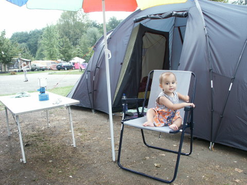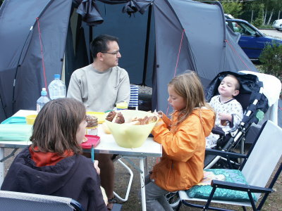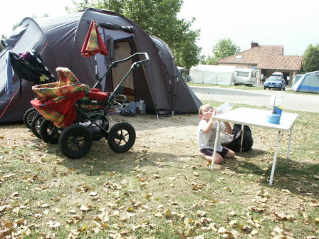 Was wir als Paar schon jahrelang gernehatten haben wir nun im Sommer 2002 mit unseren Wilden ausprobiert, wir waren campen, erst mal drei Tage im Elsass und danach so beigeistert, dass wir sicher sind, dies war nicht der erste Versuch. Platz vorher sorgfältig ausgesucht ( es lebe das Internet) , vorreserviert , losegefahren und ausgepackt, unsere kleinen und großen Kinder waren vollauf zufrieden ! Heiss war es im August, passend dazu gab es aber einen Baggersee mit Sandstrand, die Kinder wollten gar nicht mehr weg vom Wasser. Und wie praktisch dass die Elsässer deutsch sprechen, die Kinder fanden sofort Anschluss und konnten tun und lassen was das Herz begehrte. Ellert fand die Schlafkabine zum Kuscheln toll, auf Luftmatratzen kann man herrlich hüpfen und auch sonst konnte er loskrabbeln ohne dass wir Angst vor Autos haben mussten . Zum Frühstück gabs frisches Baguette, lecker, gerne wieder !!! |